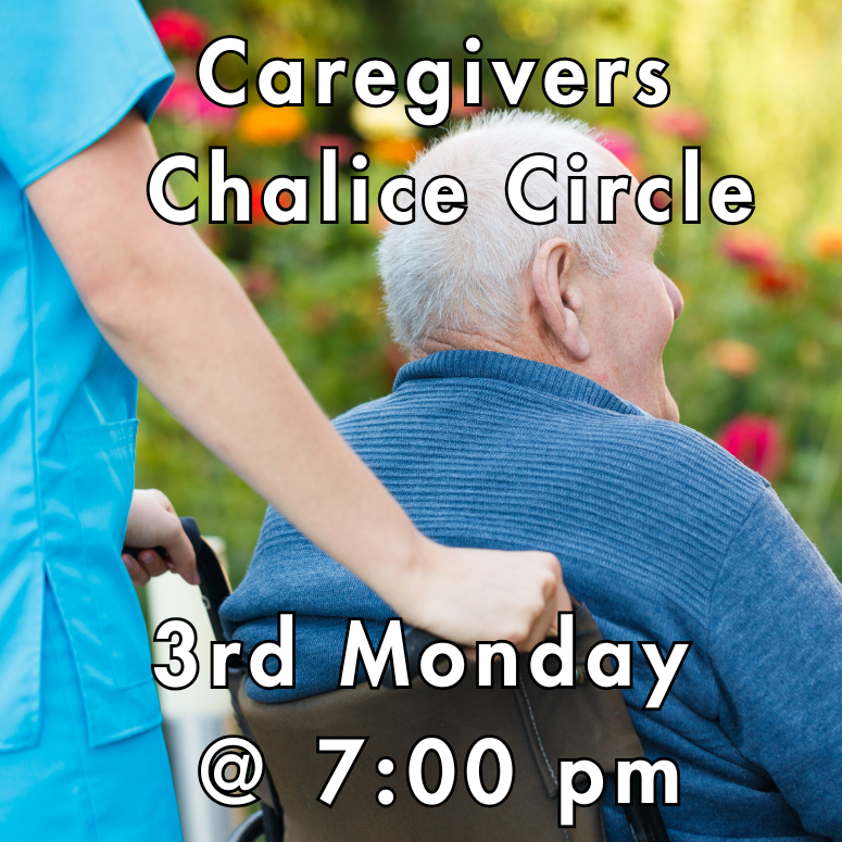We are one of the affinity groups aligned under the Congregational Life Council. We sometimes coordinate with the Care Core Team. This monthly group meeting serves those who find themselves called to be a caregiver for someone else- whether from a physical or mental/emotional illness. Each caregiving circumstance is different. Our concern is for at least one person who can no longer care for themselves without assistance. They may be local or in a distant state and might reside in their own home or apartment; others may be in a care facility.