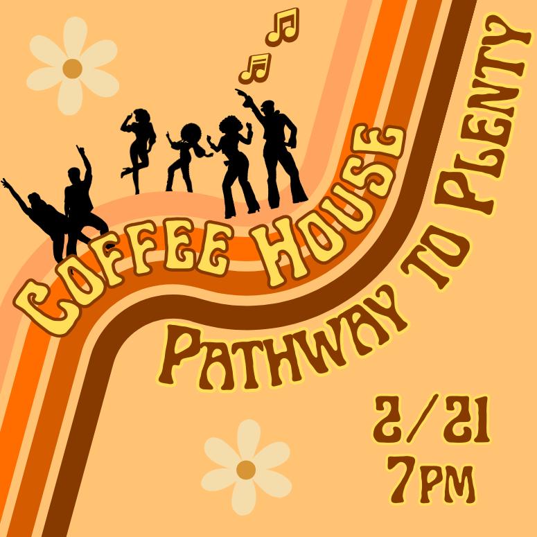 The Pathway to Plenty Coffeehouse is coming and WE NEED YOU! It is a Generosity Campaign Event and will be held on Saturday, February 21, 2025 at 7 pm. Please sign up to perform or bring snacks or help out, or all of the above.
