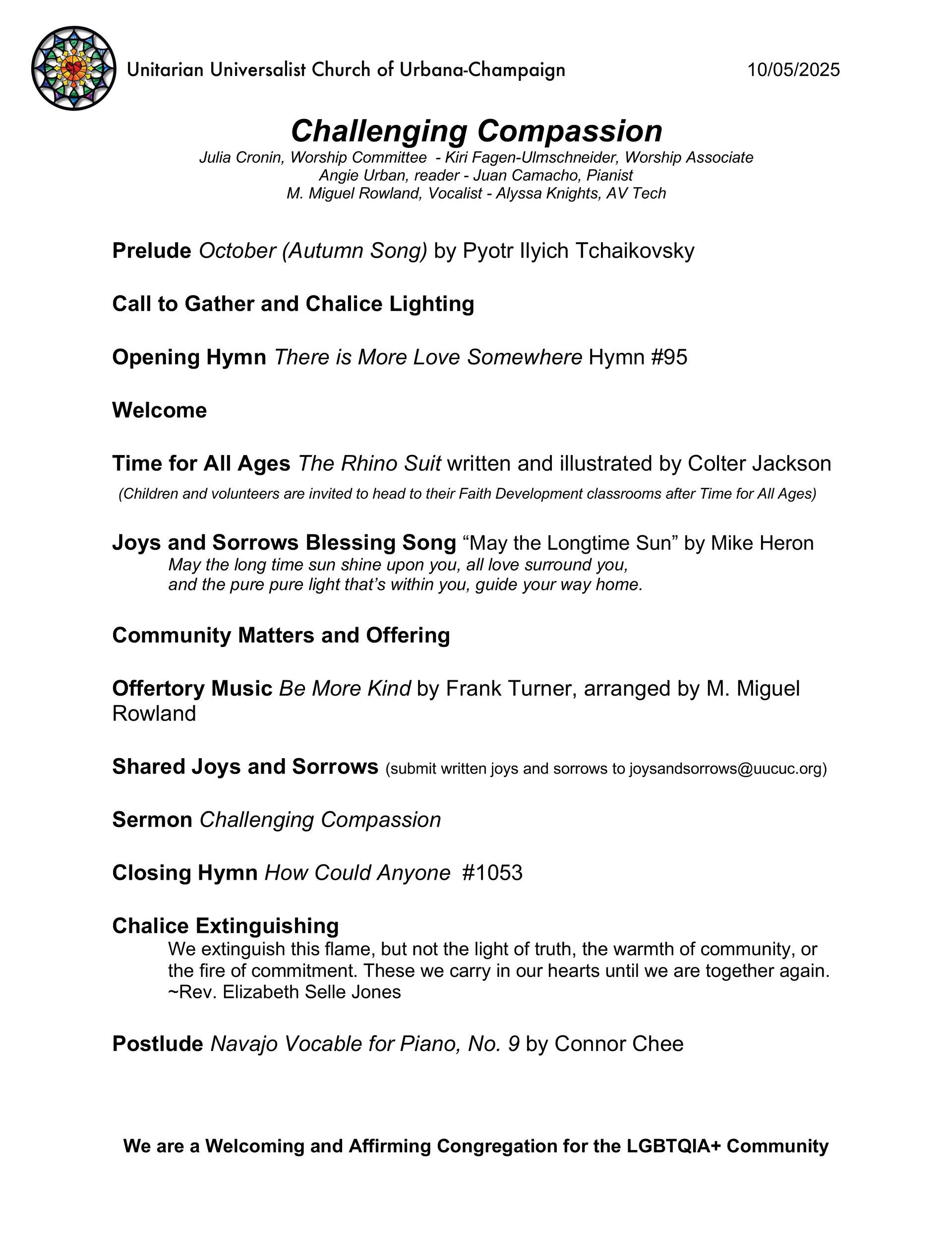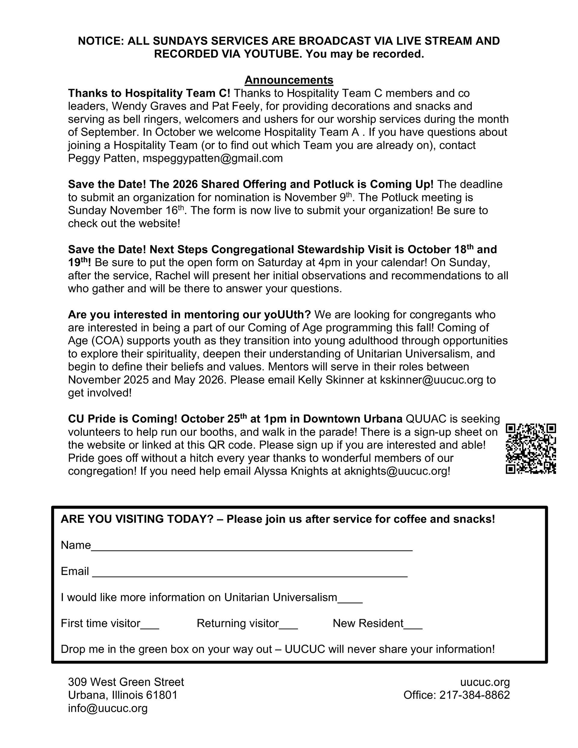 October 5th, 2025 at 10:15 am with Julia Cronin, Worship Committee
