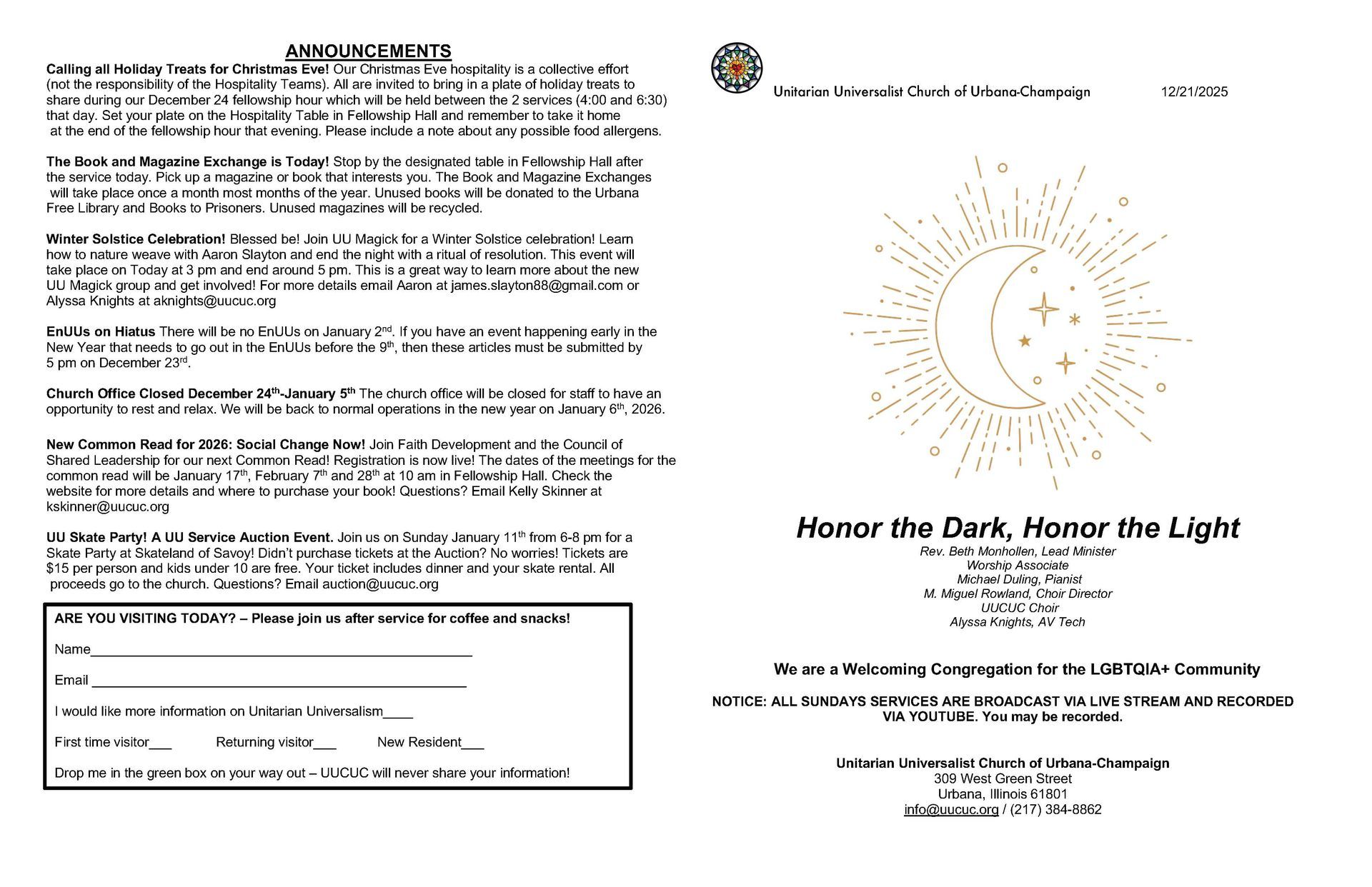 December 21st, 2025 at 10:15 am with Rev. Beth Monhollen