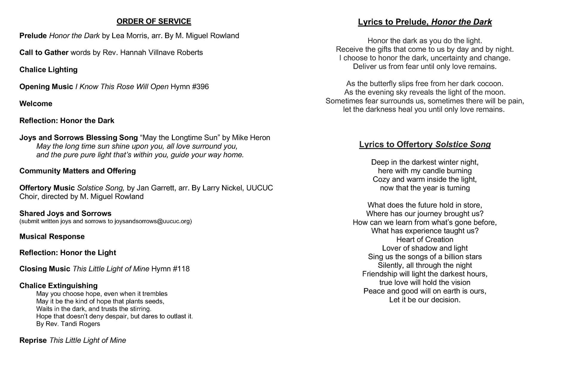 Join us for a celebration of the winter solstice, when light is reborn and hope shines bright on the longest night.