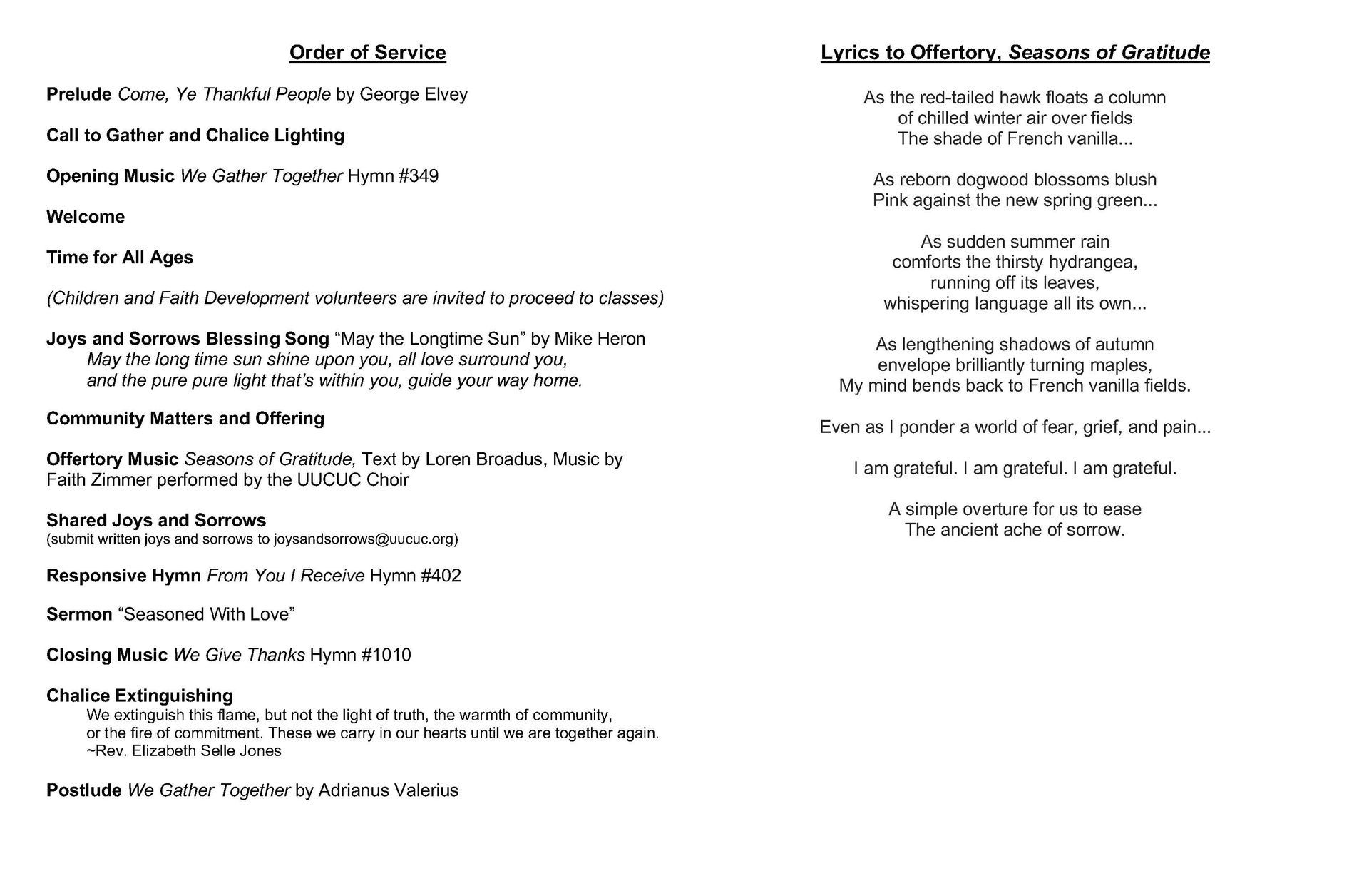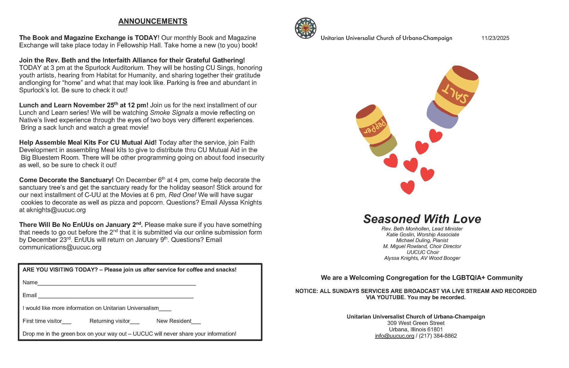 November 23rd, 2025 at 10:15 am with Rev. Beth Monhollen