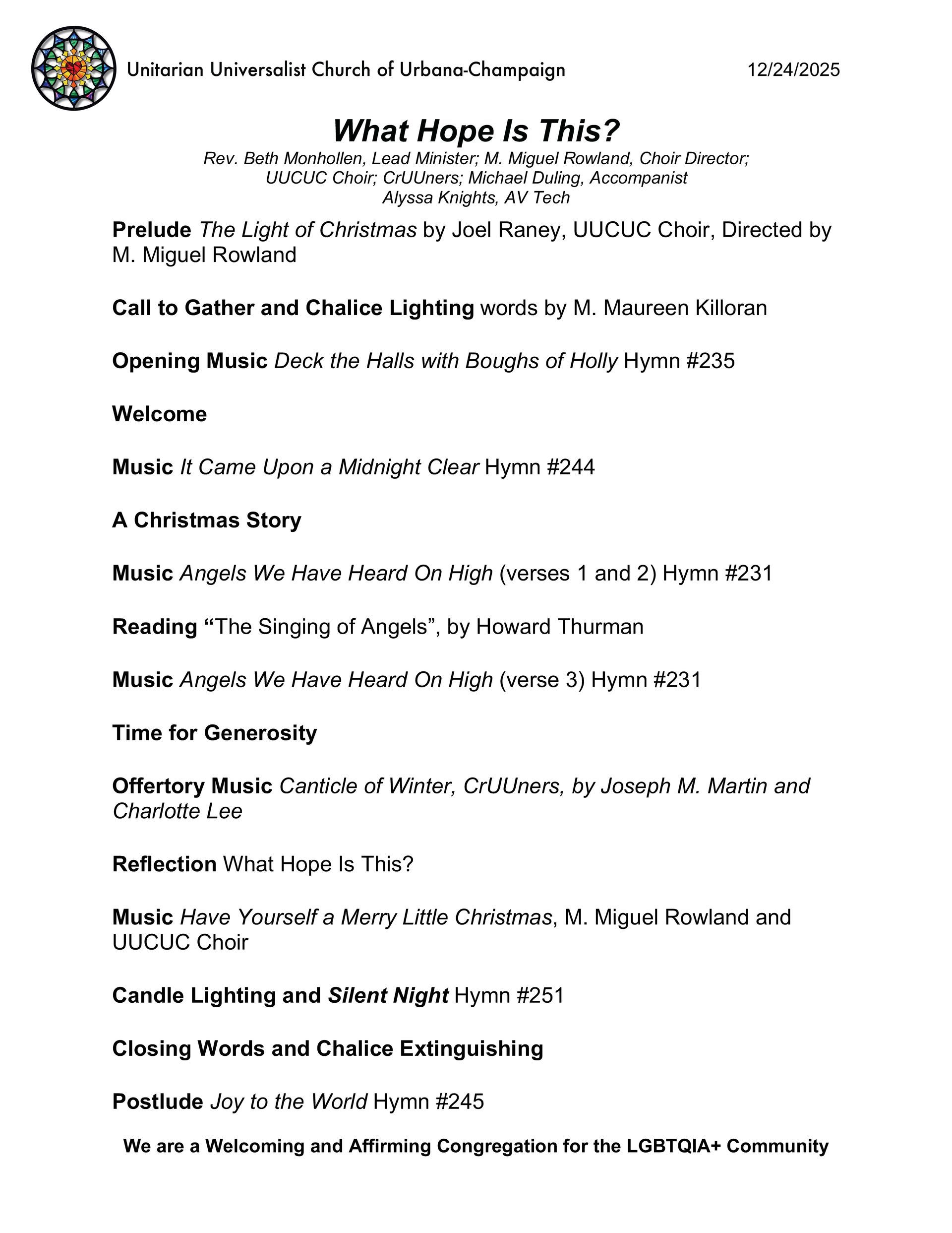 December 24th, 2025 at 4:00 pm and 6:30 pm with Rev. Beth Monhollen
